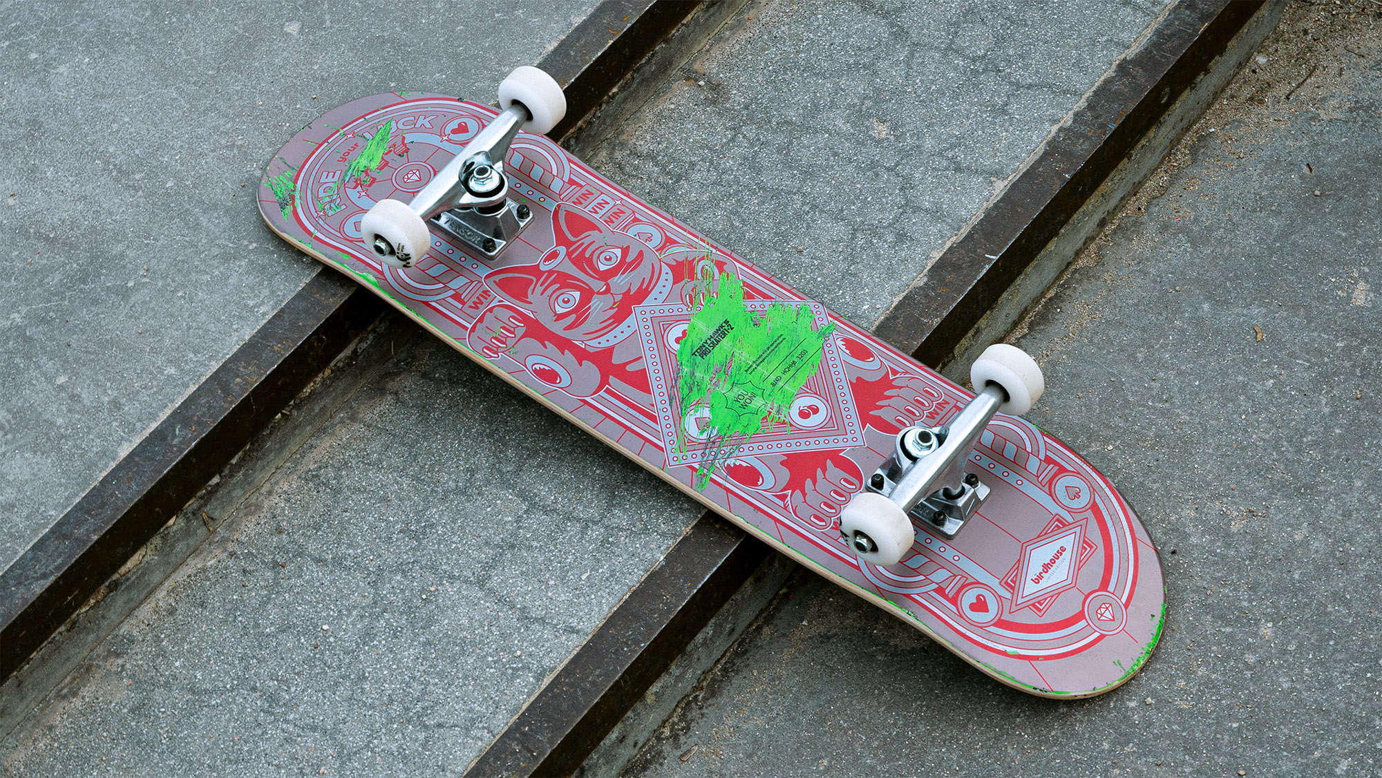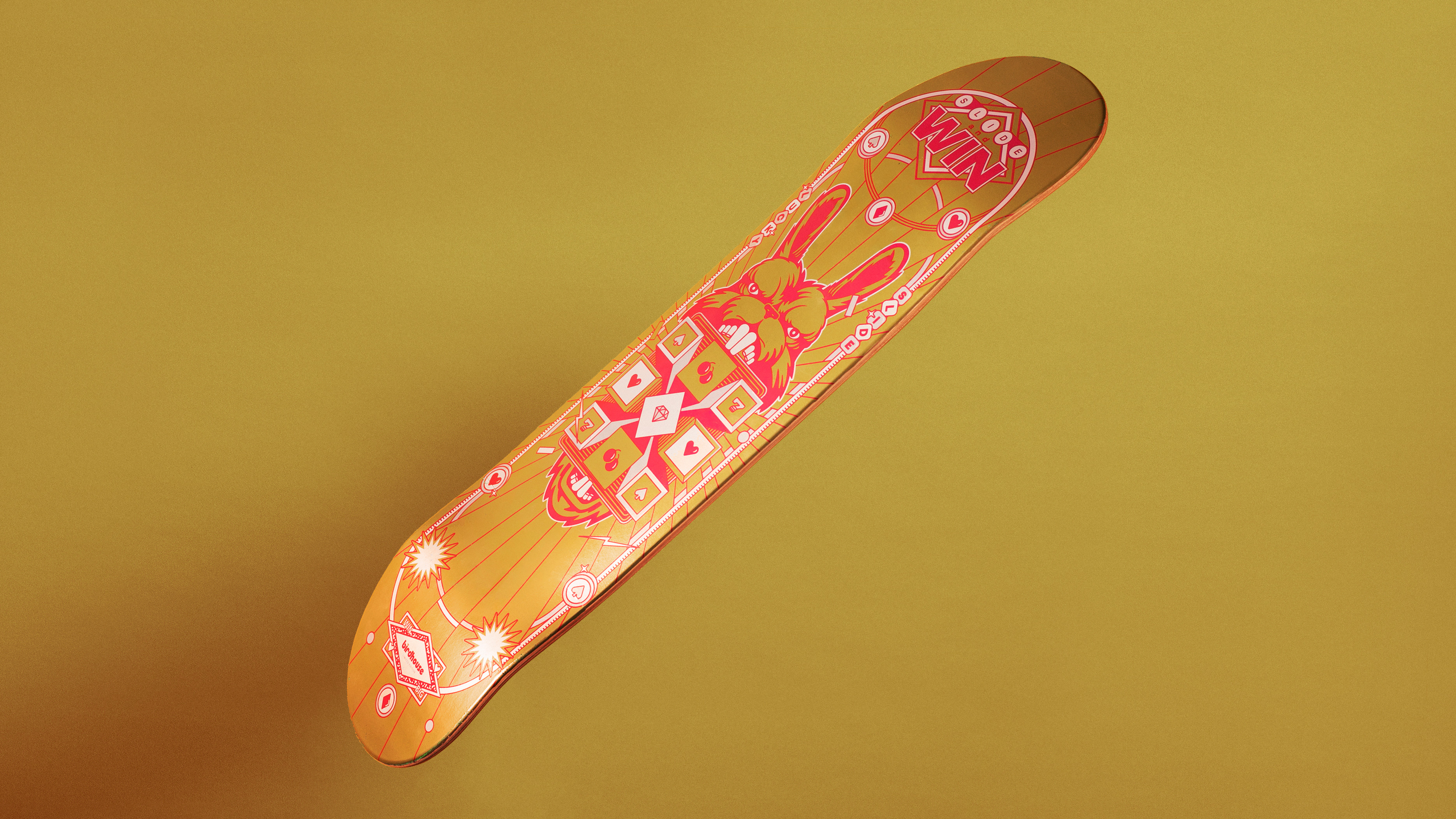 Co-designed with Birdhouse Skateboards, the boards - printed with a double layer technique – came with discount codes for the game hidden beneath the paint.